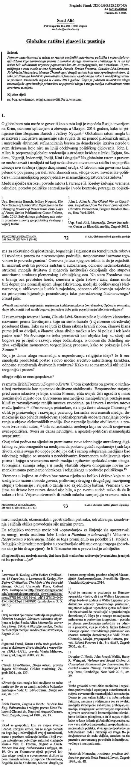 Globalno ratište i glasovi iz pustinje (Filozofska istraživanja 145, Zagreb, 2017., str. 71–81, Pregledni članak UDK 659.3:323.285(045))