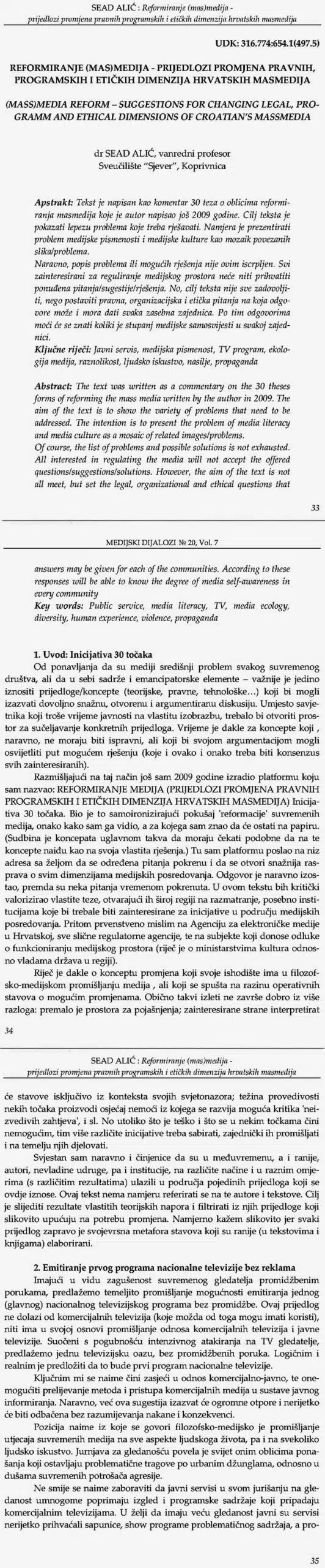 Reformiranje (mas)medija – prijedlozi promjena pravnih, programskih i etičkih dimenzija hrvatskih masmedija