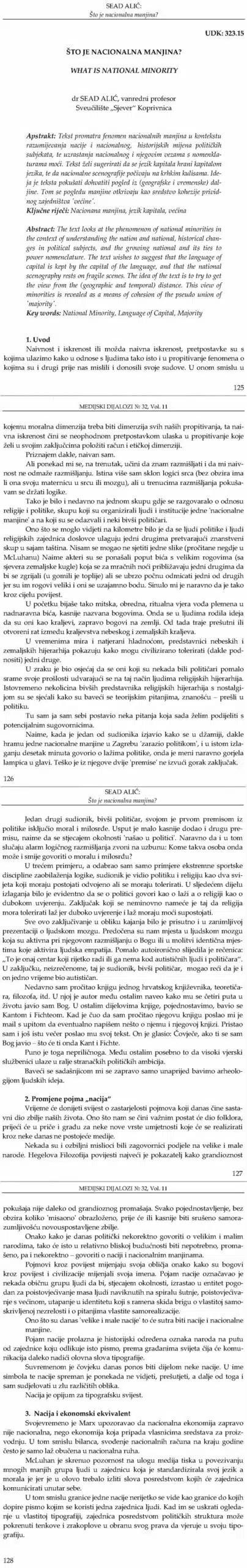 Sead Alić: Što je nacionalna manjina? Posted by seadalic | Apr 15, 2019 | Tekstovi u časopisima | 0 | Naslovnica download: pdf Što je nacionalna manjina? (Medijski dijalozi, Vol. 11, br. 32, Podgorica, novembar 2018., str. 125-132, UDK: 323.15)